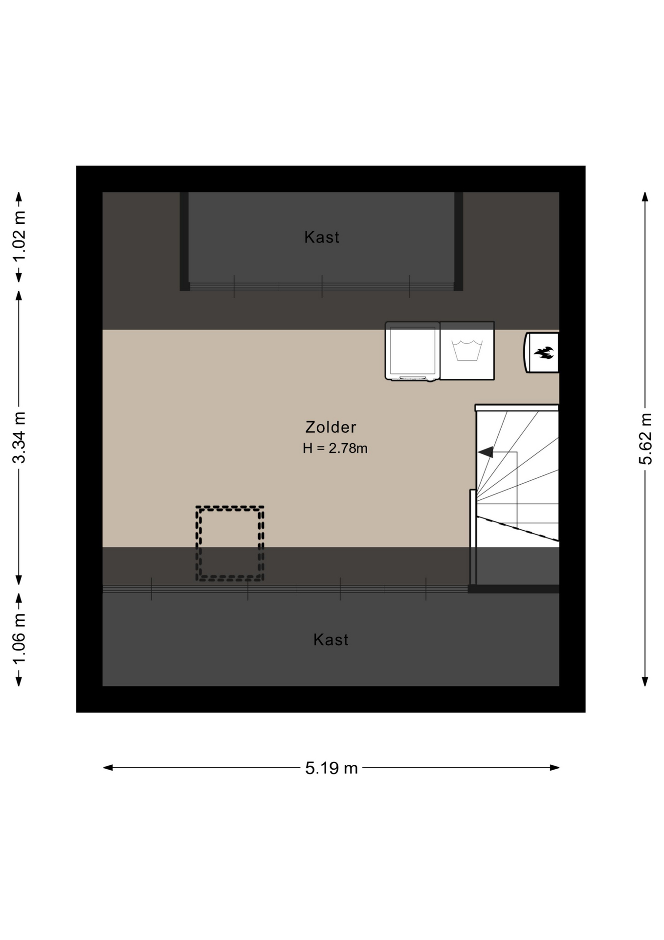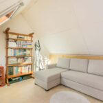 Via de vaste trap is de grote, open zolderverdieping toegankelijk. Deze multifunctionele ruimte is voorzien van een vinylvloer, Velux-dakraam met rolluik, de CV-opstelling, wasmachine- en drogeraansluiting, omvormer van de zonnepanelen en bergruimte achter de knieschotten.