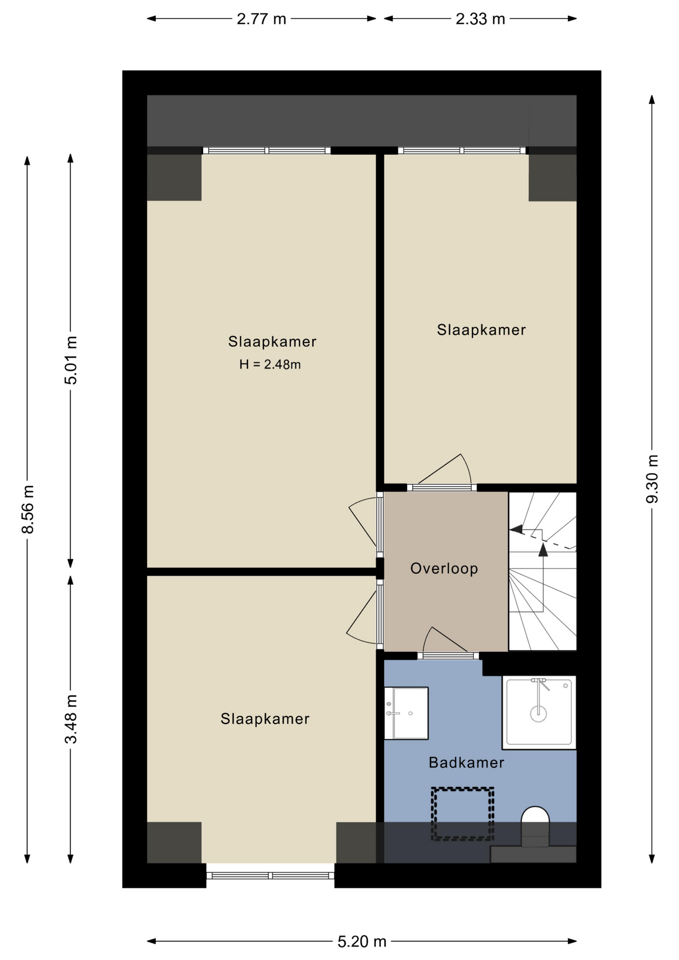 De 2e verdieping kan eenvoudig naar wens worden heringedeeld, zodat er een separate voorzolder en extra slaapkamer worden gerealiseerd.