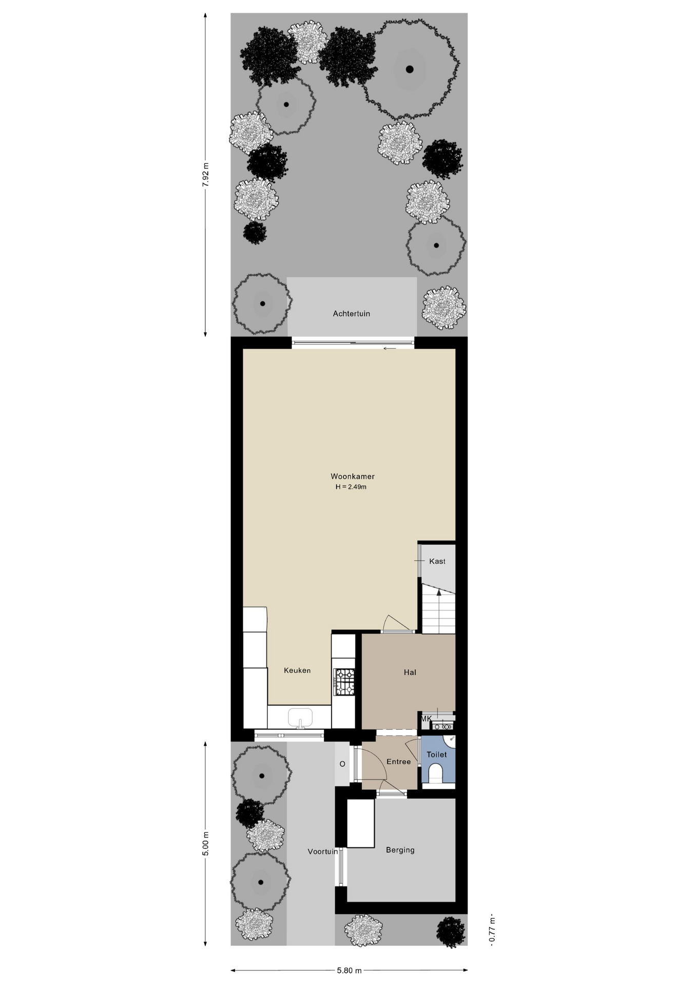 De voortuin is met moderne bestrating aangelegd en voorzien van de stenen berging met elektra en eigen buitendeur.