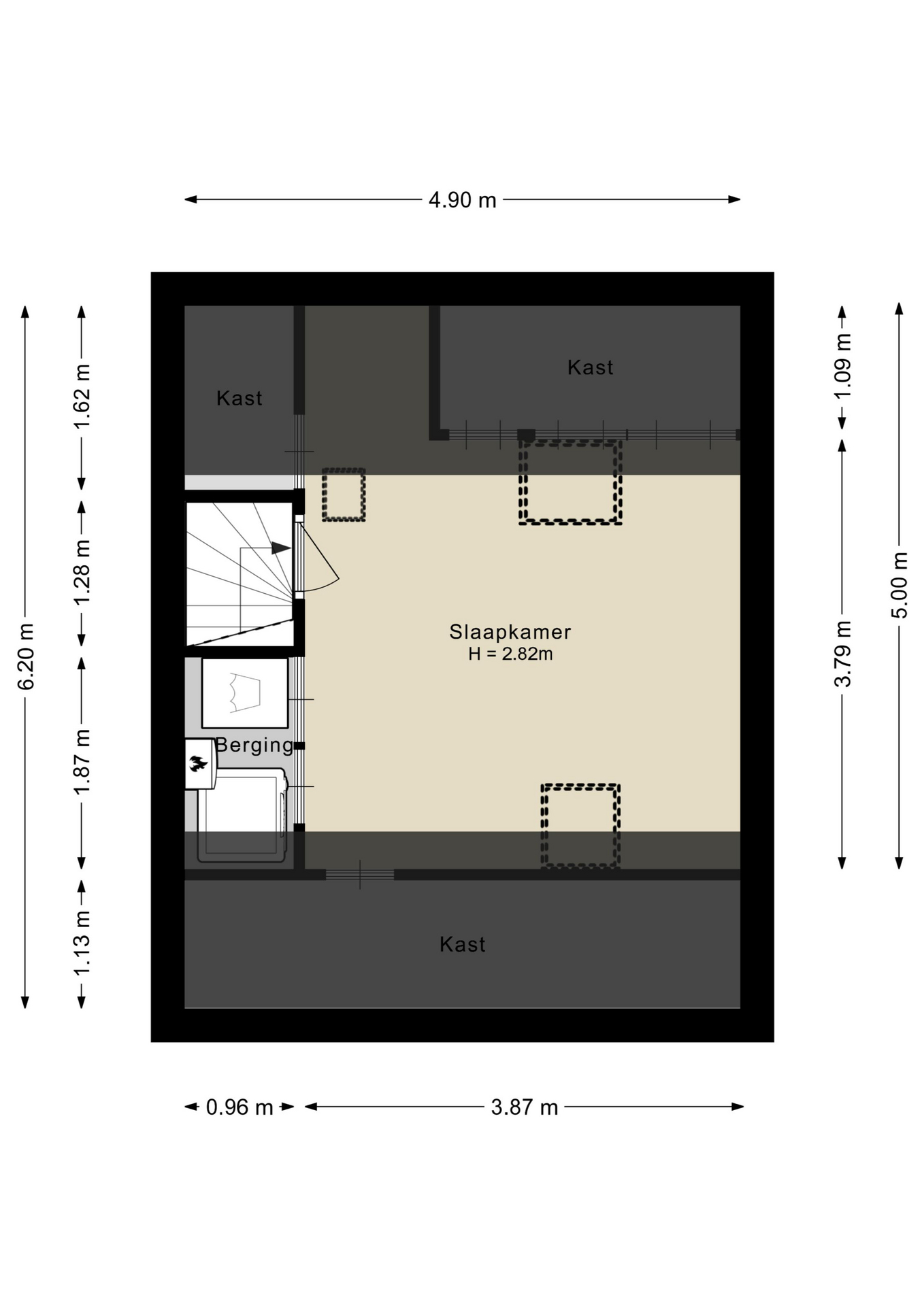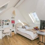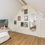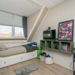 Via de vaste trap met toegangsdeur is de zeer ruime zolderkamer te bereiken. Deze strak afgewerkte slaapkamer is heerlijk licht door de 3 Velux-dakramen en voorzien van een laminaatvloer en glasvliesbehang. Daarnaast zijn er diverse vaste kasten waarin de CV-opstelling, wasmachine- en drogeraansluiting en omvormer van de zonnepanelen keurig zijn weggewerkt en er tevens voldoende bergruimte is.