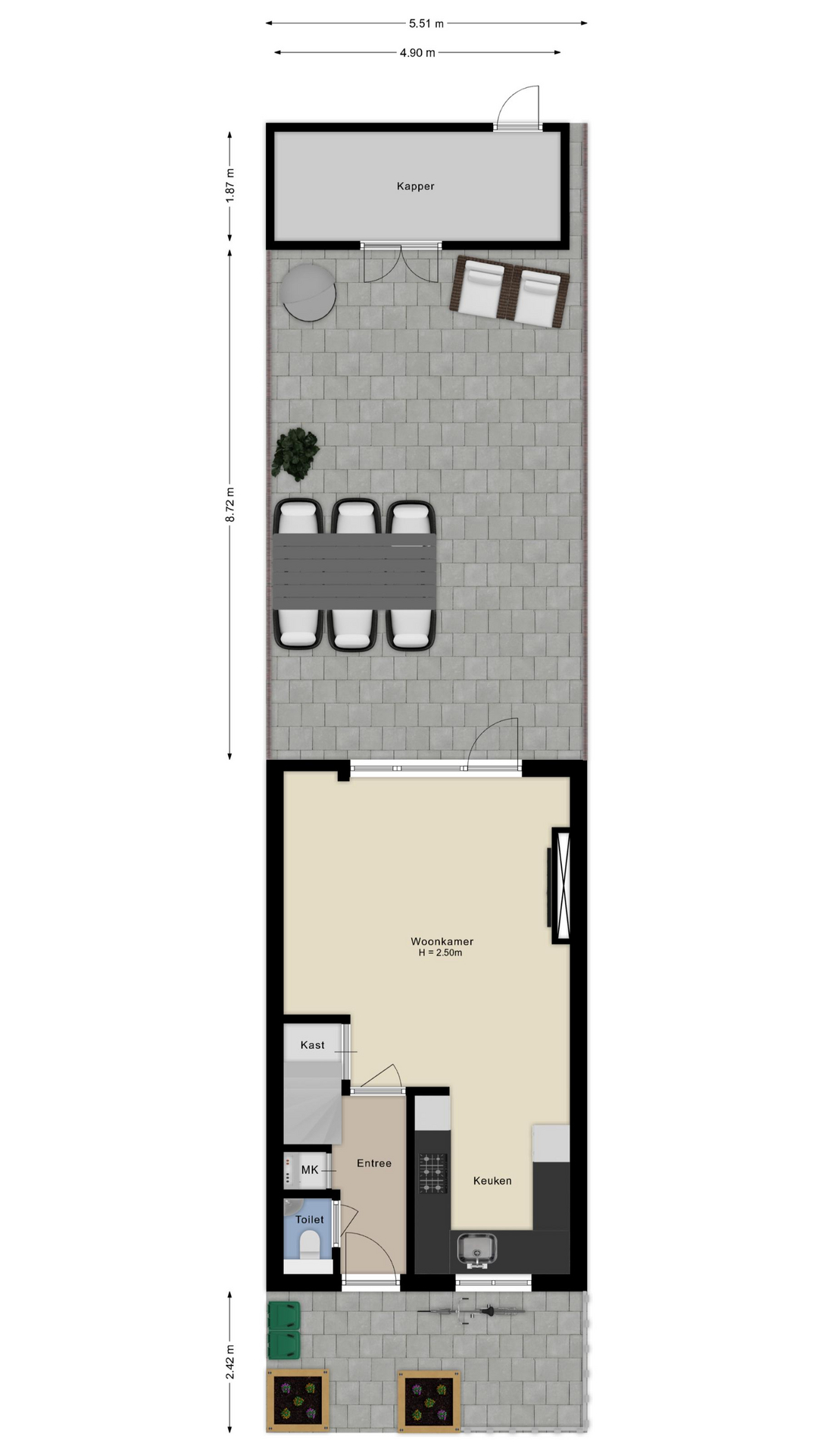 De ruime achtertuin heeft een lekkere vrije ligging en is met moderne bestrating aangelegd. Door de gunstige ligging op het zuidwesten kun je op elk plekje in de tuin eindeloos relaxen én genieten van het zonnetje.